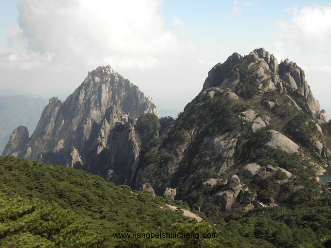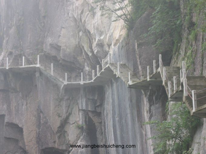 天都峰,途中有一段長10余米,寬僅1米的“鯽魚背”,兩側(cè)是千仞懸崖,深邃莫測,其形頗似出沒于波濤之中的魚之背,故名。自上而下,坡陡達85度左右,若遇風吹云涌,仿佛山搖石動,游客至此無不戰(zhàn)戰(zhàn)兢兢,有“天都欲上路難通”感慨。民國二十六年(1937)建登峰梯道,長3里,有1564級臺階,194個石欄干和600米鐵索,保障游人安全攀登絕頂。1984年于峰腰另辟新徑至峰頂。站在峰頭遠眺,云山相接,江河一線,俯瞰群山,千峰競秀,風光無比壯麗。古有詩贊曰:“任他五岳歸來客,一見天都也叫奇?!泵裰{云:“不到天都峰,白跑一場空?!币鉃榇朔鍨橛吸S山必游之地。