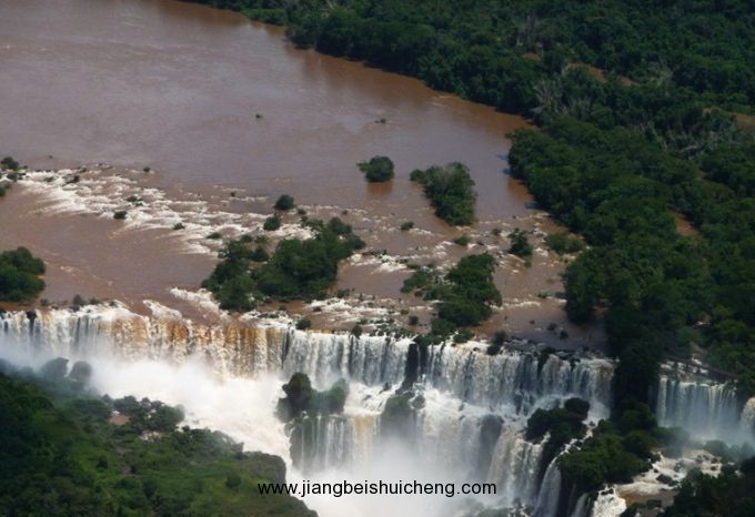 位于最西邊的是“魔鬼瀑布”,魔鬼瀑布最為氣勢磅礴,以排山倒海之勢直落深淵。轟鳴聲震耳欲聾。強烈的威懾力使人不敢靠近;“主瀑布”在中間,主瀑布高122米、寬約1800米,落差約93米。流量最大,中間有一條縫隙;東側(cè)是“馬蹄瀑布”,它因被巖石遮擋為馬蹄狀而得名;像巨簾一般的“彩虹瀑布”則位于“馬蹄瀑布”的東邊,空氣中的水點折射陽光,產(chǎn)生美麗的彩虹。彩虹瀑布即因時??梢詮闹锌吹狡呱屎缍妹KF形成的彩虹遠隔20公里以外就能看到,彩虹經(jīng)常在飛濺的水花中閃爍,并且能上升到305米的高度。在月色明亮的晚上,水氣更會形成奇異的月虹;“東瀑布”是最東的一段,該瀑布在旱季時往往是陡崖峭壁,雨季才成為掛滿千萬條素練般的瀑布。