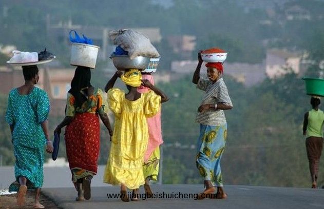 馬里婦女喜愛頭上包著花頭巾,戴著金黃色耳環(huán),其直徑足有二三厘米,也有戴鼻環(huán)的,不過直徑比耳環(huán)小得多,那些有身份的婦女,大都要戴金項鏈和手鐲。巴馬科的房屋多是平頂長窗,用紅顏色的磚砌成,帶有濃厚的阿拉伯建筑色彩,又反映出強烈的西非地區(qū)的特色,小巧美觀。一幢幢白色的別墅和高層歐式建筑掩映在綠樹鮮花叢中。市內(nèi)最高的建筑是塔尖高聳的巴馬科大清真寺和17層的友誼賓館。