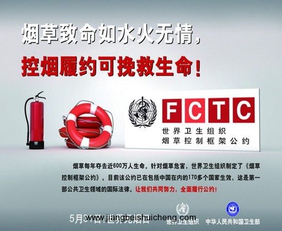 自20世紀50年代以來,全球范圍內(nèi)已有大量流行病學研究證實,吸煙是導致肺癌的首要危險因素。為了引起國際社會對煙草危害人類健康的重視,世界衛(wèi)生組織1987年11月建議將每年的4月7日定為“世界無煙日(World No-Tobacco Day)”,并于1988年開始執(zhí)行。自1989年起,世界無煙日改為每年的5月31日。2013年5月31日是第26個世界無煙日,主題是“全面禁止煙草廣告、促銷和贊助。”