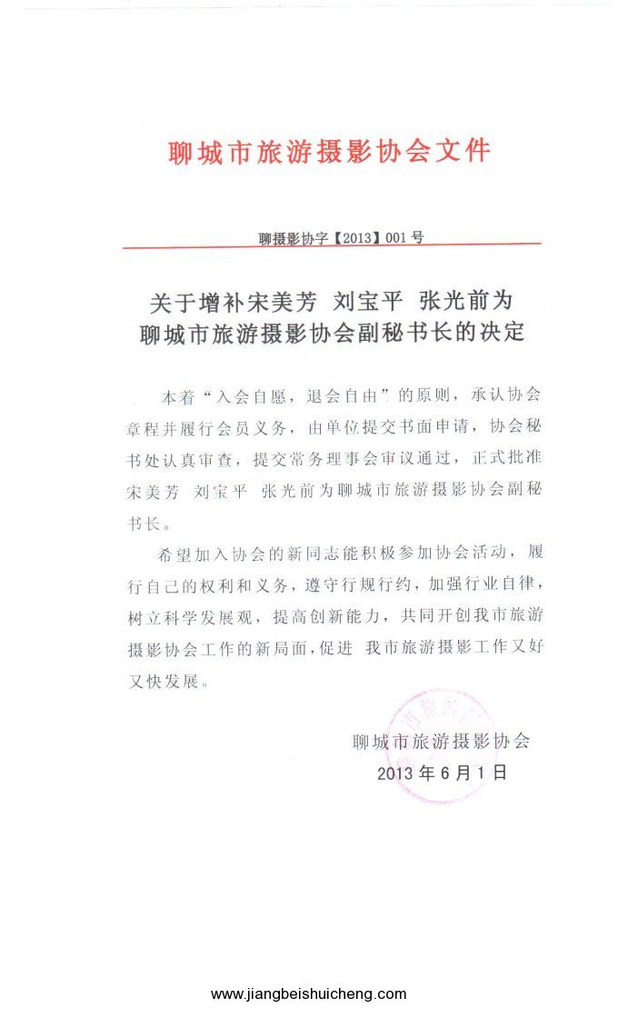 劉寶平擔(dān)任聊城市旅游攝影協(xié)會(huì)副秘書長(zhǎng)