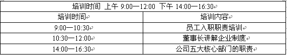 培訓時間一天,內(nèi)容包括:辦公室、財務、網(wǎng)絡、客服、業(yè)務(計調(diào)、前臺、導游)培訓,企業(yè)制度培訓等。上午是《聊之旅員工入職職責》的培訓,從員工試用期開始到正式簽訂工作協(xié)議,對職業(yè)準則以及員工行為準則都進行了詳細地說明,員工所關(guān)心的的薪酬問題、績效問題也在文件中提及。