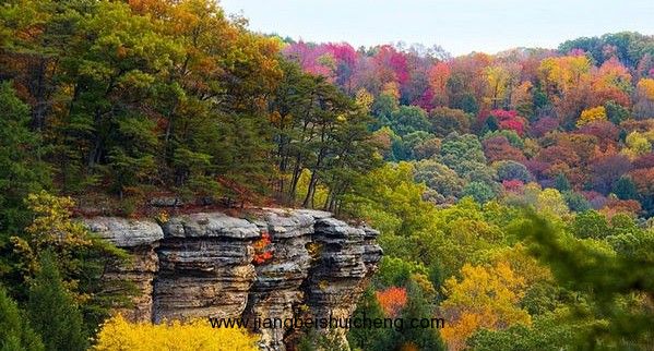 從9月中旬,漆樹、黃楊、山毛櫸等率先以深紅、鵝黃拉開了秋的序幕;隨后,糖楓、紅楓、西克莫楓等上百種楓樹也慢慢由黃色、橙色轉(zhuǎn)變成紅色,與交織其中的綠松、杉樹共同譜寫出秋的主旋律;而伴隨著越來(lái)越長(zhǎng)的夜晚、越來(lái)越?jīng)鏊奶鞖?,北方紅楓等加?xùn)|常見(jiàn)的樹木,以深沉的紅褐色預(yù)告著秋天即將謝幕。當(dāng)這些如馬賽克般紅的、黃的、橘紅的、褐色、金黃的色彩掩映在碧水藍(lán)天之間,你會(huì)驚嘆于造物主的巧奪天工。