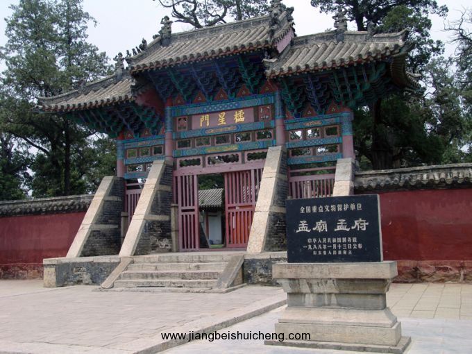 孟府是孟子嫡系后裔居住的府第。建于元至順二年(1331年),元仁宗皇帝封孟子為“鄒國亞圣公”,從此,這里就被稱為“亞圣府”。孟府是一座典型的中國貴族府第,占地面積約2.24萬平方米。以主體建筑大堂為界,前為官衙,后為內(nèi)宅。整體布局大方氣派,典雅中透著幾分威嚴(yán)。孟府內(nèi)現(xiàn)在還保存著封建帝王所賜的朝服、龍袍、圣旨、誥封、家族檔案、印書木刻和書籍字畫等大量珍貴文物,為研究中國封建社會的歷史,提供了寶貴的資料。