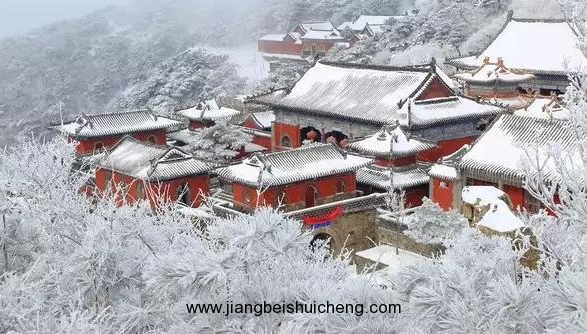 一場(chǎng)雪落,萬(wàn)籟俱靜。遠(yuǎn)方山黛,近處墻紅,廟檐堆雪,樹(shù)掛霧凇。這一派景象甚是恢弘!