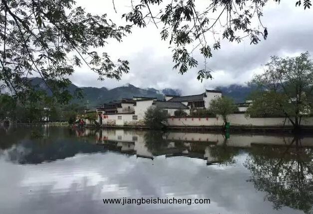 宏村為:山為牛頭,樹(shù)為角,屋為牛身,橋?yàn)槟_”的牛形村落。