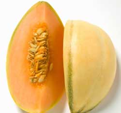 甜瓜又稱甘瓜或香瓜。它是夏令消暑瓜果,其營養(yǎng)價值可與西瓜媲美。據(jù)測定,甜瓜除了水分和蛋白質(zhì)的含量低于西瓜外,其他營養(yǎng)成分均不少于西瓜,而芳香物質(zhì)、礦物質(zhì)、糖分和維生素C的含量則明顯高于西瓜。祖國醫(yī)學(xué)確認甜瓜具有“消暑熱,解煩渴,利小便”的顯著功效。因甜瓜性寒,有吐血、咳血、十二指腸及胃潰瘍、慢性腸炎、脾胃虛寒、寒積腹脹或腹痛腹瀉、小便頻多、心臟病等人慎用或忌用。正常健康的人也不宜大量常吃,因甜瓜水分很多,吃太多在胃里會沖淡胃液,傷胃引起消化不良或腹痛腹瀉。