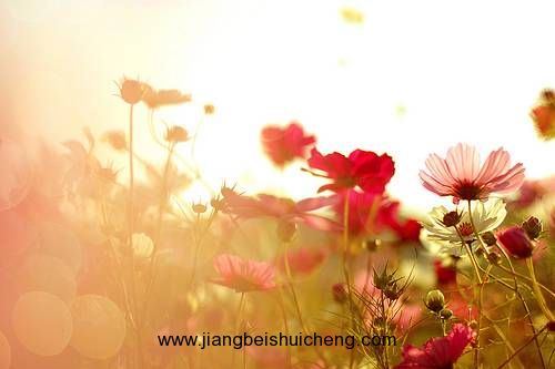 18、柔和的金色從綠色的樹(shù)葉上流淌下來(lái),花開(kāi)無(wú)聲。