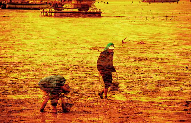 第二天早餐后驅(qū)車紅光漁業(yè)社,乘船隨潮水下海拍攝拾貝、踩蛤場景。午餐在船上食用,盡享漁民生活。下午2點(diǎn)左右返回,拍攝沿海的濕地風(fēng)光后返程。