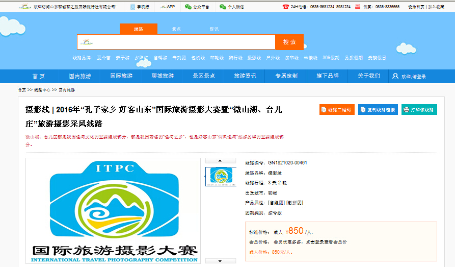 山東聊城聊之旅國際旅行社有限公司發(fā)布的攝影旅游專項(xiàng)產(chǎn)品。