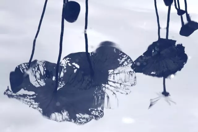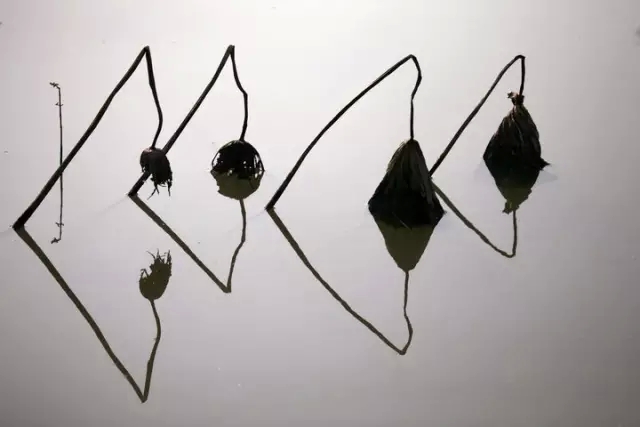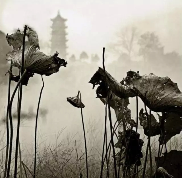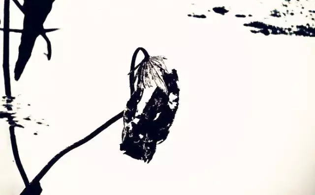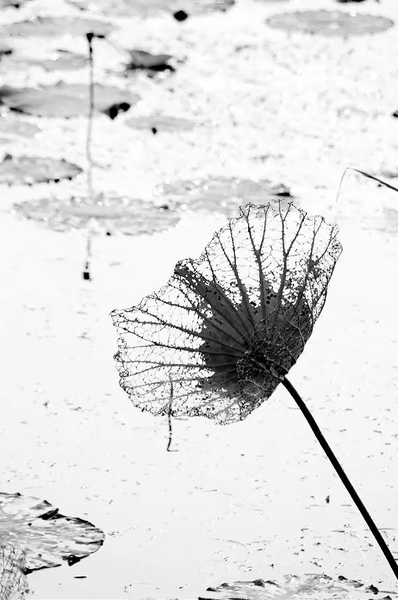 在色彩上也可以做減法,只留下黑白對比。去除了多余色彩的干擾,凸顯殘荷的形狀線條,更有了中國水墨畫的韻味。
