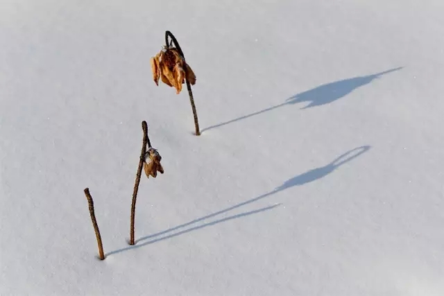 殘荷的拍攝時間很長,幾乎整個秋冬季節(jié)都可以拍,不同的時間,殘荷在消逝過程中有不同的形態(tài)。