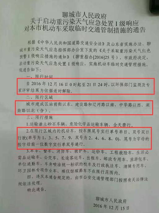 限行時(shí)間:自2016年12月16日0時(shí)起至21日24時(shí)(以環(huán)保部門監(jiān)測及專家評(píng)審結(jié)果為依據(jù)適時(shí)解除)