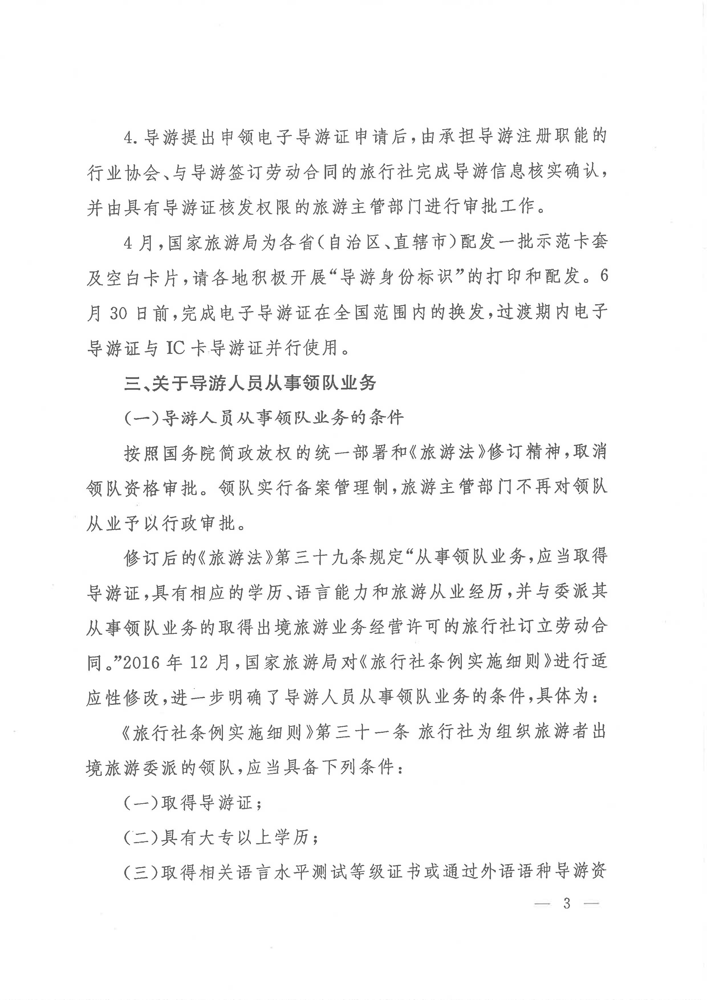 為全面推進(jìn)導(dǎo)游體制改革,去年5月以來,國家旅游局正式啟動在廣東、江浙滬的線上導(dǎo)游自由執(zhí)業(yè)試點(diǎn)工作以及四川成都等地的線上線下導(dǎo)游自由執(zhí)業(yè)試點(diǎn)工作。為配合做好相關(guān)工作,正式展開電子導(dǎo)游證換發(fā)工作。