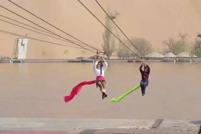 “飛黃騰達”滑索跨越黃河最長距離達到了955.7米,是目前最長的跨黃河索道?;柙邳S河之上,不僅讓人驚呼過癮!