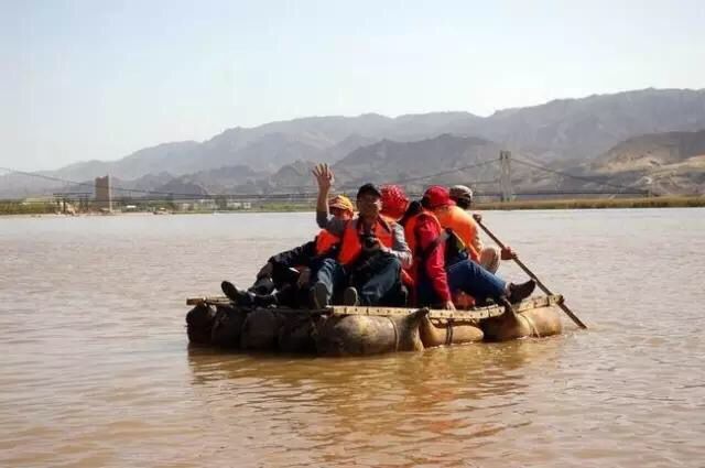黃河上的非物質文化遺產——羊皮筏子漂流。羊皮筏子也只在比較淺的水域行駛,因此坐筏子的感覺也少了些驚心動魄。坐在筏子上,低頭就能看見黃河水從羊皮胎的空當中悠悠穿過,向下一伸手穿過木架子就能撩到涼涼的河水,更奇妙的是筏子隨著水波蕩漾晃晃悠悠,乘客卻不會被水打濕,有點“我自端坐,任他風浪”的味道。