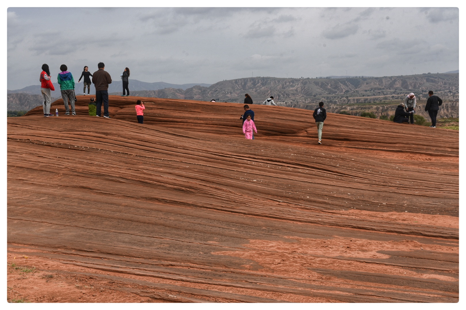 早起拍攝龍洲丹霞黃土高原的日出云海,早餐后拍攝龍洲丹霞地貌波浪谷奇觀。龍洲丹霞地貌其奇特的地貌和神奇的外觀令人嘆為觀止。紋理線條很是清晰,像一層層的海浪,環(huán)繞著起伏的小山丘形成了差異的走向,赤色的沙石在周?chē)S土高原的映襯下顯得色彩濃郁,驚艷奇絕。