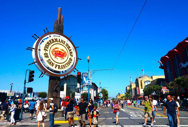 文化課程:舊金山文化考察——金門大橋、漁人碼頭,九曲花街 (金門大橋是世界著名大橋之一,被譽為近代橋梁工程的一項奇跡,也被認為是舊金山的象征。)