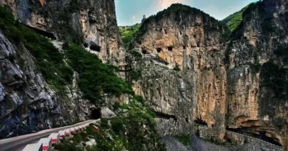 井底村著名的掛壁公路,全長(zhǎng)1500多米長(zhǎng)的“掛壁公路”, 39個(gè)窗口。是井底村人歷經(jīng)14年的時(shí)間,在懸崖峭壁上艱難地開(kāi)鑿而成的。