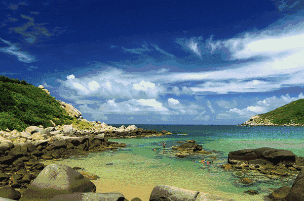 長達6公里的碧海銀灘,為植被茂密的低緩山坡所環(huán)抱,被世界旅游組織專家贊譽為海南現存未開發(fā)的最美麗海灣。