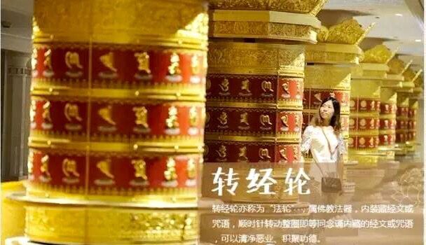 第五層為般若殿,供奉黃財(cái)神一尊,韋陀菩薩4尊,八大菩薩4800尊。此層有轉(zhuǎn)經(jīng)輪,屬佛教法器,內(nèi)裝藏經(jīng)文或咒語,順時(shí)針轉(zhuǎn)動(dòng)整圈即等同念誦經(jīng)文或咒語,可以清凈惡業(yè)、積聚功德。