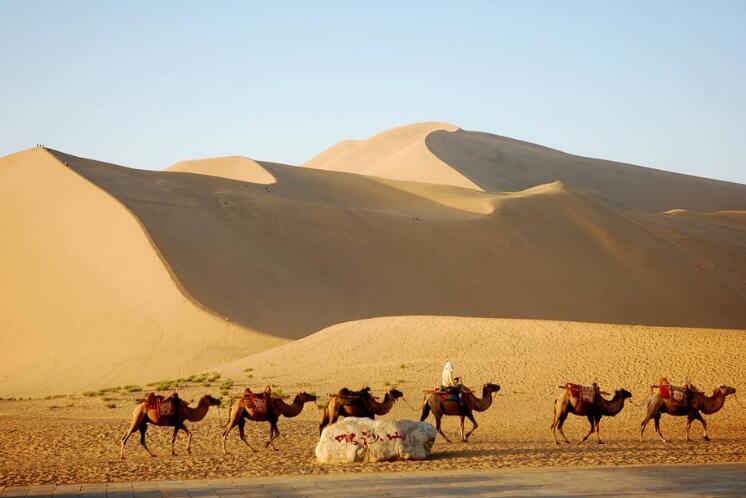 上午乘車前往【鳴沙山月牙泉】,欣賞日出(游覽時間約2小時);【鳴沙山月牙泉】古往今來以“山泉共處,沙水共生”的奇妙景觀著稱于世,被譽為“塞外風(fēng)光之一絕”1994年被定為國家重點風(fēng)景名勝區(qū),鳴沙山有流沙積聚而成,沙體遇到摩擦震動,便會殷殷發(fā)聲,輕若絲竹,重如雷鳴,故名“鳴沙山”,月牙泉位于鳴沙山北麓,因外形酷似一彎新月,故名“月牙泉”。千百年來不被流沙淹沒,不因干旱而枯竭。下午大家適時返程。