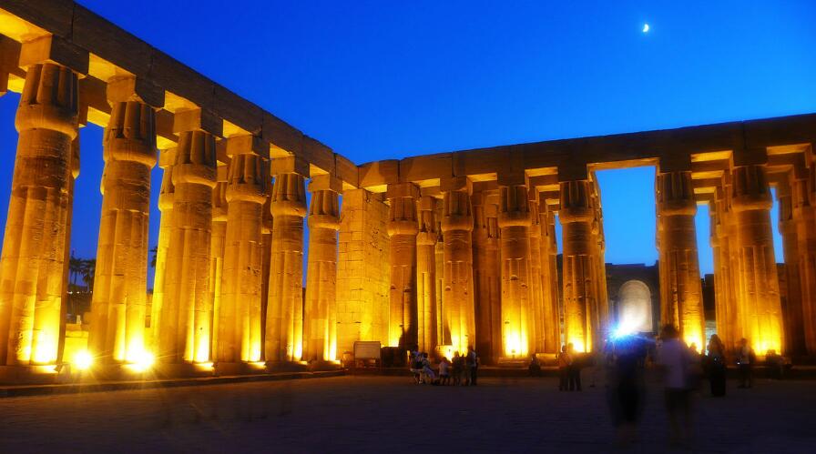 參觀后返回游輪,前往盧克索,途經(jīng)伊斯納水閘門(mén),此時(shí)會(huì)有很多當(dāng)?shù)刎溬u(mài)的小船靠近游輪,非常熱鬧。抵達(dá)盧克索后,游輪靠岸停泊,乘車(chē)前往參觀盧克索神廟,習(xí)近平主席訪問(wèn)埃及時(shí),埃及總統(tǒng)就在這里接待。晚上燈光一打,盧克索神廟不同凡響,像希臘神殿,像歐洲的廣場(chǎng),氣勢(shì)十足又安靜莊嚴(yán),天空孤星伴月,千年歷史的積淀讓人安詳寧?kù)o。參觀結(jié)束后返回游輪休息。