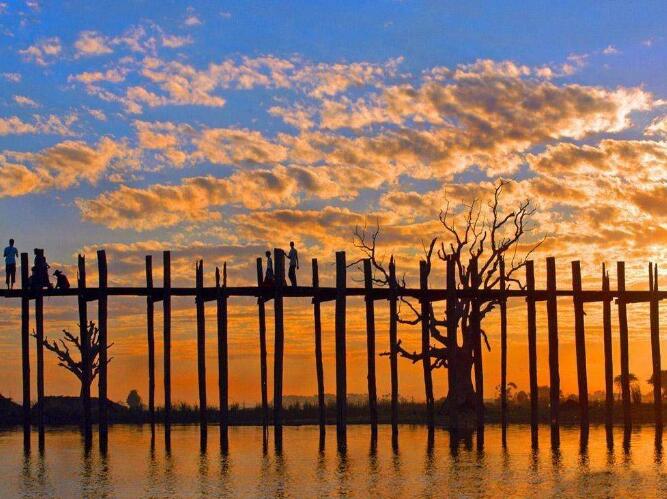 飯店內(nèi)早餐后,乘車前往曼德勒市西南郊的【烏本橋】,此橋全長(zhǎng)2千余米,全部由柚木建成,又稱“情人橋”,至今已有2百多年的歷史;橋上當(dāng)?shù)匦腥撕图t衣僧侶悠閑往來,小販攤商兜售特產(chǎn),奶茶館掩映在古樹如傘的巨大樹冠之下,平和中又充滿生活的情趣。參觀在其面前前往橫跨大河的“情人橋”,全橋總長(zhǎng)1200公尺,全部由柚木建成,又稱柚木橋。參觀緬甸特產(chǎn)【翡翠玉】。乘機(jī)前往黑河。抵達(dá)后,乘車前往艷麗湖。抵達(dá)湖邊的娘惹鎮(zhèn)后,換乘當(dāng)?shù)靥厣男〈巴ㄓ谒叺哪疚菥频?。入住后,用晚餐,并欣賞當(dāng)?shù)亍?strong>民族歌舞表演】。