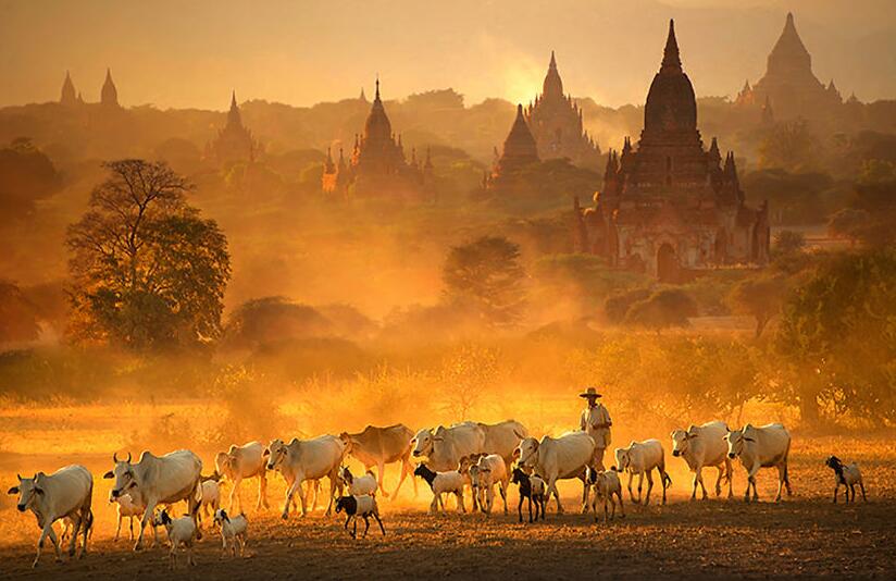 飯店內(nèi)早餐后,前往國(guó)內(nèi)機(jī)場(chǎng),乘機(jī)飛蒲甘,大約1小時(shí)航程。古都蒲甘位于伊洛瓦底江畔,蒲甘佛塔群始建于十至十三世紀(jì)之間,非常具有藝術(shù)及考古價(jià)值。首先我們參觀蒲甘地區(qū)最古老的佛塔—【瑞喜貢塔】,之后參觀蒲甘最美的佛塔—【阿南達(dá)塔】,此塔在蒲甘眾多佛塔當(dāng)中色彩最豐富,建筑形制也最富于變化,塔內(nèi)四周供奉著四尊莊嚴(yán)祥和的佛主神像;接著參觀蒲甘最高的佛塔—【大冰瑜塔】,此塔有神廟之譽(yù)。下午參觀參觀蒲甘著名的手工藝品—【漆器】的制作,及精美的【柚木】雕刻品。傍晚登上靠近伊洛瓦底江邊的【日落塔】,欣賞色彩艷麗豐富的【蒲甘日落】美景。