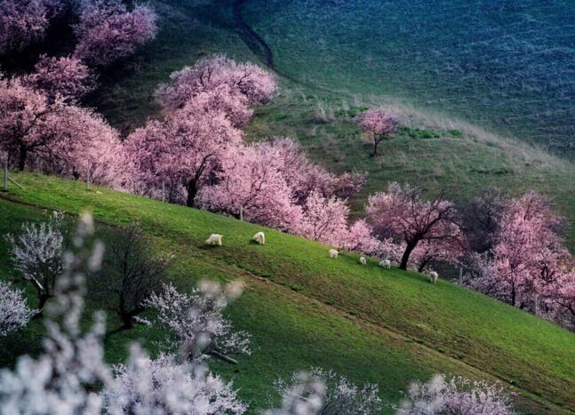 早餐后乘車前往參觀【吐爾根杏花溝】。(賞花時(shí)間根據(jù)當(dāng)?shù)氐臍夂蚝吞鞖鈼l件決定,敬請(qǐng)諒解)每年四月份起,伊犁河谷開始進(jìn)入一個(gè)美麗浪漫的季節(jié),山上、草原上的果花、草花次第盛開,美不勝收!最先盛開的就是野杏花。那個(gè)季節(jié)野杏花綿延十幾公里,粉紅的、雪白的杏花把一個(gè)個(gè)山頭妝扮起來,牛羊似珍珠灑落在花林間、草坡上。最震撼是這種自然、原生態(tài)的壯美,一個(gè)花海的世界、一個(gè)迷人的仙境!抵達(dá)新源用晚餐,晚餐后入住酒店。