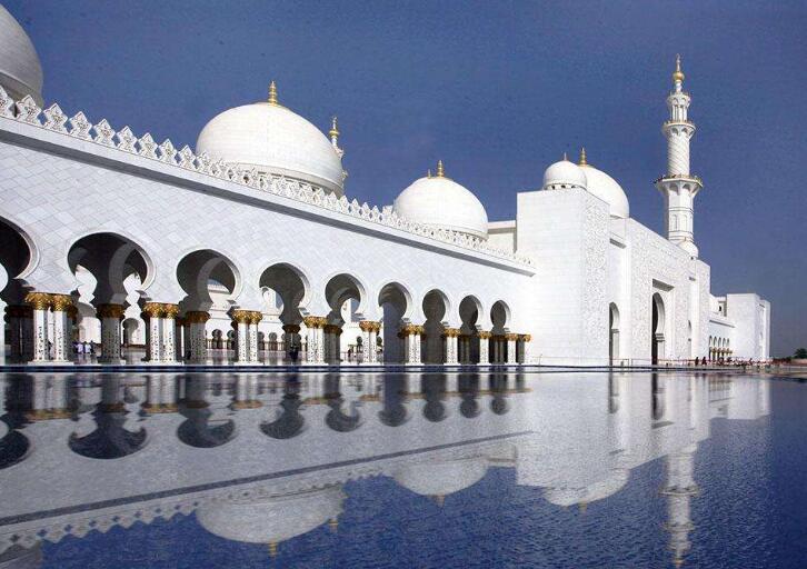 酒店自助早餐后,乘車前往中東沙漠中的花園城市阿聯(lián)酋首都【阿布扎比】(車程約1.5小時(shí))。參觀阿聯(lián)酋最大最豪華的清真寺【扎伊德清真寺】(入內(nèi)參觀1小時(shí)),【總統(tǒng)陵】。大清真寺內(nèi)有全世界最大的手工制地毯,及耗資80萬美金的施華洛世奇水晶吊燈。整個(gè)建筑群都用希臘玉石包裹著,白色典雅。
