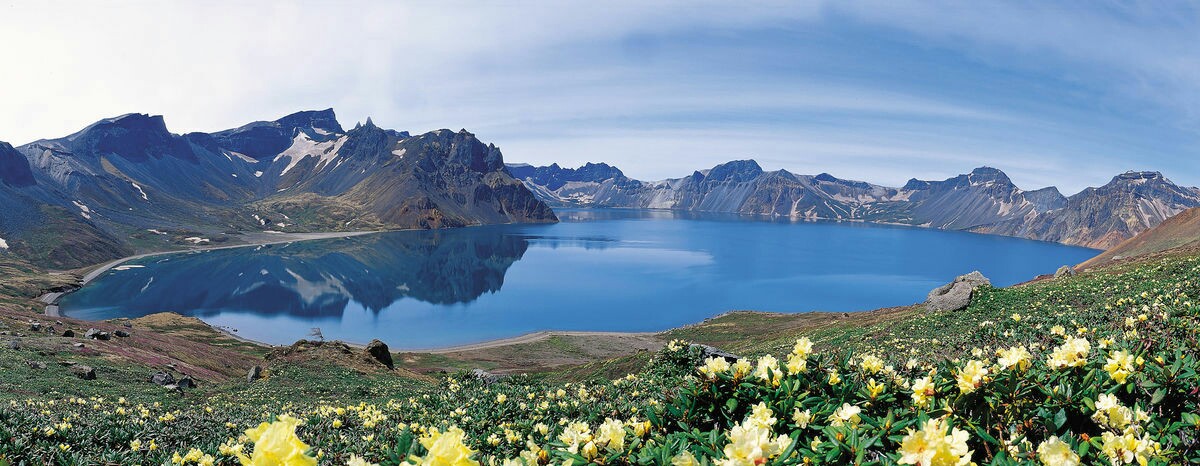 你知道長(zhǎng)白山的名字來源嗎?當(dāng)你自己到天池的山頂遠(yuǎn)眺,謎底自然解開:就是夏天,你也能看到連綿的白色。再配上火山口的一汪藍(lán)綠色的水,你就知道為什么長(zhǎng)白山天池那么有名了!