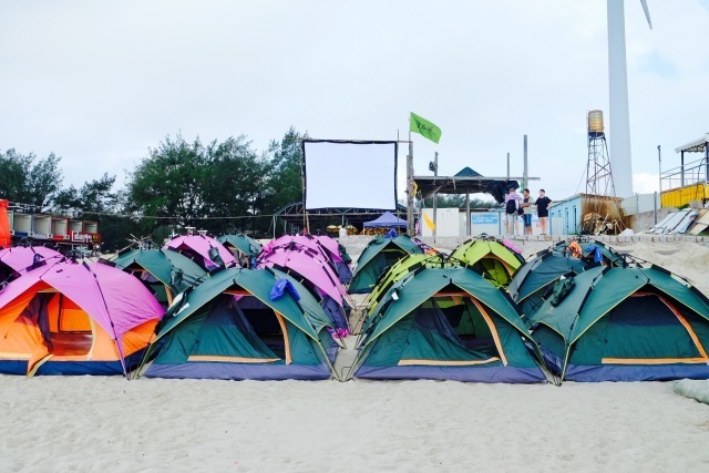 晚上沙灘房車汽車自駕營(yíng)地里搭帳篷住一晚,在夜里看見(jiàn)滿天繁星。