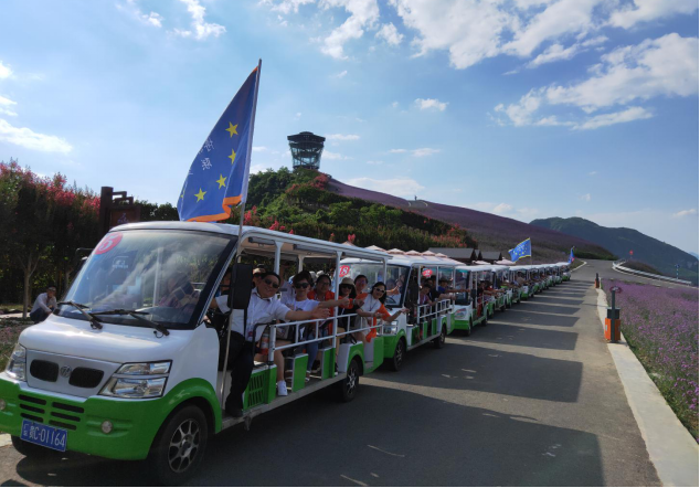 博盟考察團(tuán)在黔北花海景區(qū)乘坐電車觀光游覽(完)