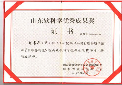 山東軟科學(xué)優(yōu)秀成果獎證書 |
