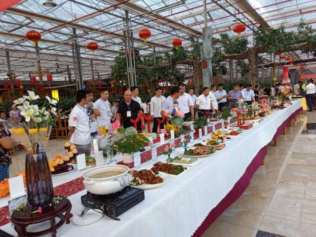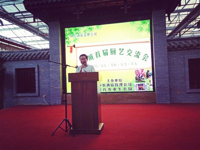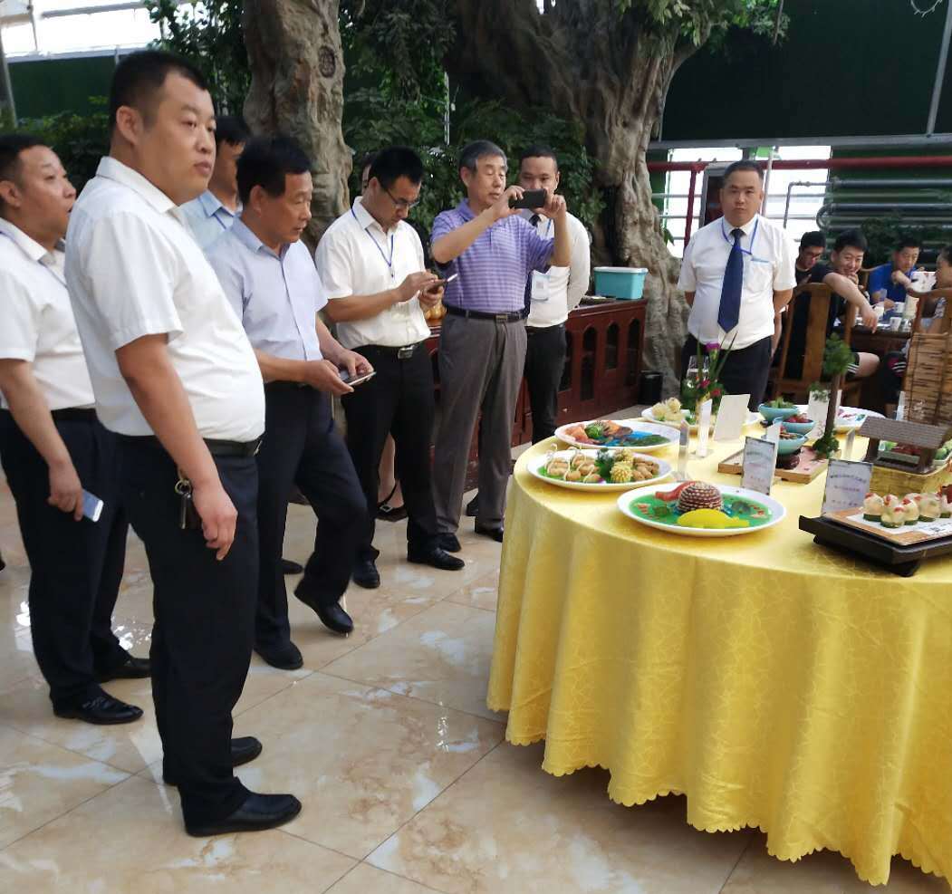 莘州集團(tuán)旗下中農(nóng)酒店管理公司總經(jīng)理李傳輝,誠邀各位參會嘉賓參觀生態(tài)園廚藝交流會,介紹生態(tài)園特色,欣賞精美菜品。各位參展嘉賓為廚藝交流會表示贊許。
