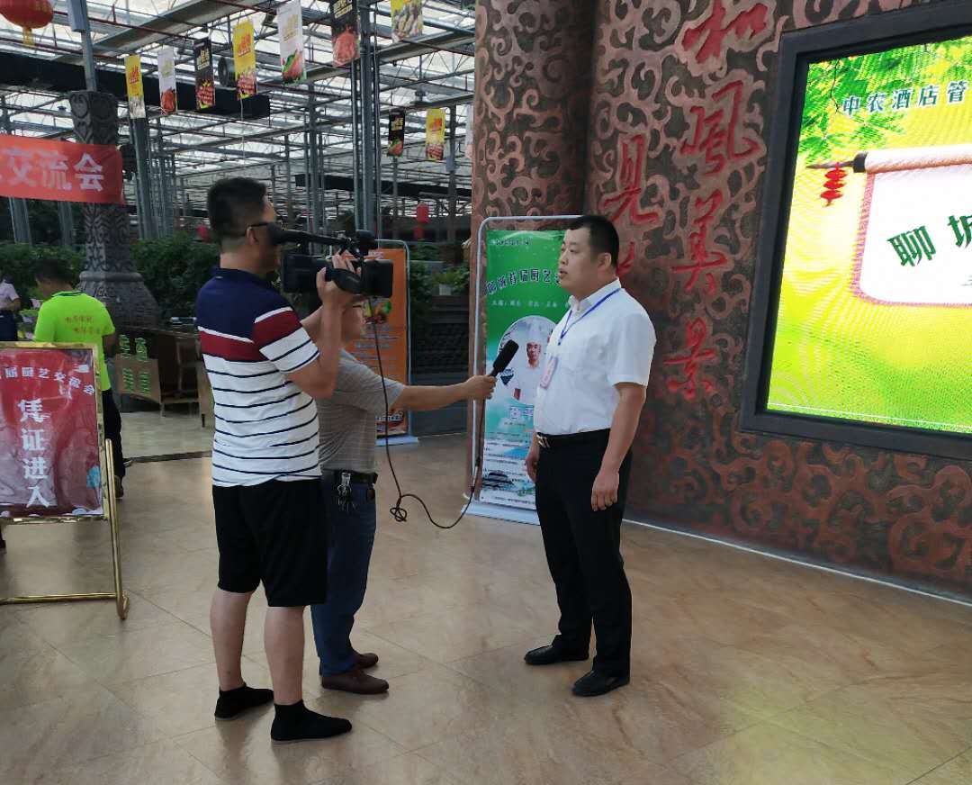 中農(nóng)酒店管理公司總經(jīng)理李傳輝、現(xiàn)代農(nóng)業(yè)生態(tài)園餐廳總廚商平勇在活動(dòng)現(xiàn)場,接受莘縣電視臺記者專訪。李總向記者詳細(xì)闡述組織廚藝交流會的意義,這是聊城市同行餐飲人的集會,有利于增進(jìn)互相的了解,促進(jìn)共同進(jìn)步,共創(chuàng)更加輝煌的酒店餐飲業(yè)。商廚向記者介紹了餐飲中菜品的相關(guān)情況。