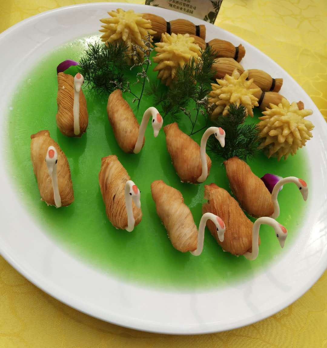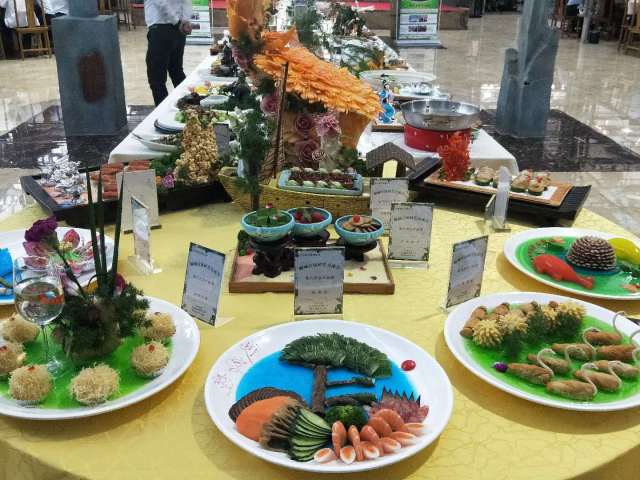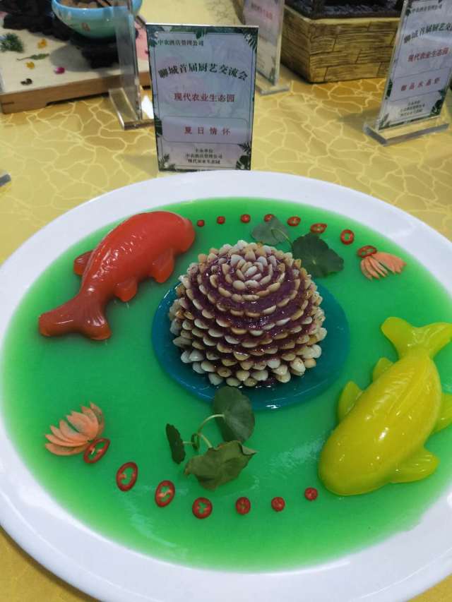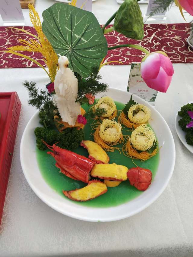 瞧!這些精致的擺盤,別出心裁的制作,都是廚藝交流會的參展作品,這些都出自聊城市20多家飯店的名廚之手!“迎客松”、“繁花似錦”、“天鵝戲水”、“夏日情懷”……這些菜品不僅樣式別致,菜名更是充滿了詩情畫意!這些都是我們聊城市餐飲界廚師們的匠心之作!百余種菜品,共同組成了饕餮盛宴,讓觀賞者都忍不住垂涎!