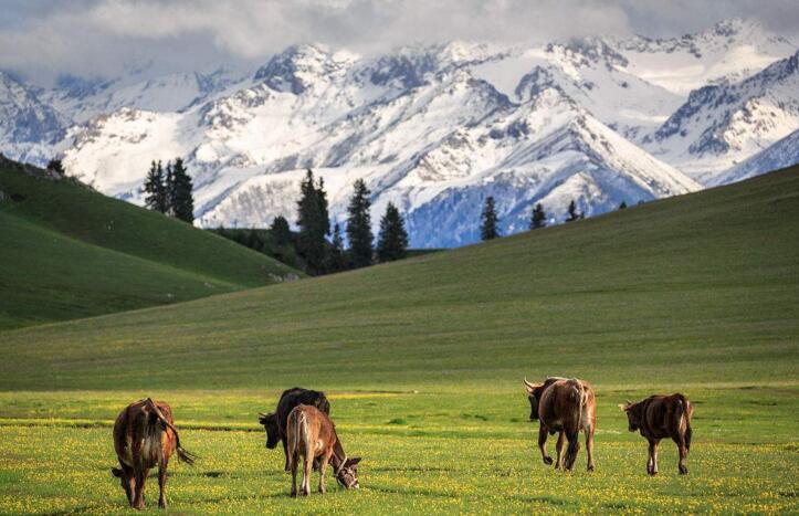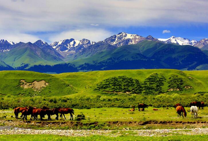 早餐后,前往特克斯。新疆伊犁谷地西的特克斯,位于昭蘇縣境內(nèi),是新疆最美的草原,這里的哈薩克族、柯爾克孜族風(fēng)情獨特,山清水秀,人文濃郁。特克斯縣縣城是中國唯一的【八卦城】,建筑風(fēng)格獨特,后游覽【喀拉峻草原】位于特克斯縣南喀拉峻山,距縣城直線距離約30公里,有簡易公路相通。海拔1600~2800,喀拉峻系哈薩克語,意為"黑色莽原"??菰L(fēng)景獨特,草豐林茂,主要指闊克蘇河以東,喀甫薩郎河以南,以喀拉峻山為主體,南接瓊庫什臺,包括瓊庫什臺,克什庫什臺和庫爾代峽谷,面積約759平方公里??菰堑湫偷纳降夭莸轭愋筒菰?,喀拉峻草原地勢起伏和緩,視野開闊,草原5~9月碧草茵茵,盛夏之際雨水豐富、日照充足,各種野花恰似點點繁星開遍山野。夏季來到喀拉峻草原,如同步入花的海洋,暑氣頓消。晚住昭蘇是天馬——伊犁馬的故鄉(xiāng)。