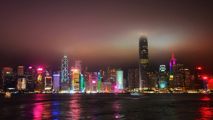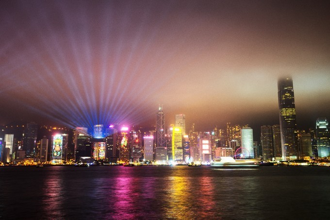 尖沙咀的夜晚,必打卡的夜景。這是還沒開始“幻彩詠香江”前正常的中環(huán)大樓們。