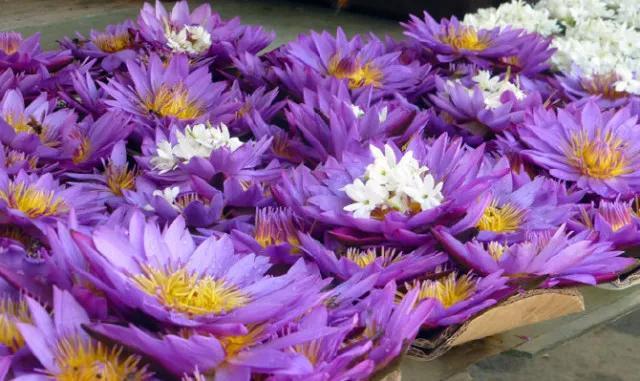 在斯里蘭卡古代文學(xué)作品和藝術(shù)品中對這種花多有描寫。在佛牙寺附近,絡(luò)繹不絕的當(dāng)?shù)厝藭?huì)買上一捧象征圣潔的藍(lán)蓮花,滿懷虔誠的走進(jìn)寺廟。