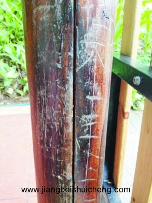 走進光孝寺和六榕寺,白墻綠瓦格外寧靜。但寺內(nèi)的千年古樹卻遭殃了,在光孝寺觀音臺旁邊的竹群中,幾乎找不到一棵干凈的竹子。每一顆竹子上都刻有名字、×××與×××相愛到永遠、平安等字眼。而在光孝寺放生堂附近的一棵千年菩提樹上,也有不少傷痕。六榕寺的清水磚墻平均不到一平方米的地方就有約兩三處涂鴉,由于寺廟有定期清理,因此記者看到一塊塊白色的痕跡。光孝寺寺內(nèi)的工作人員告訴記者:“佛寺比較森嚴,游客不敢隨便在建筑上刻畫,但在樹木上刻畫就多了,我見到的大多都是年輕男女所為?!?