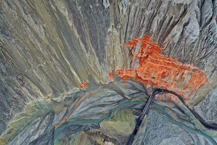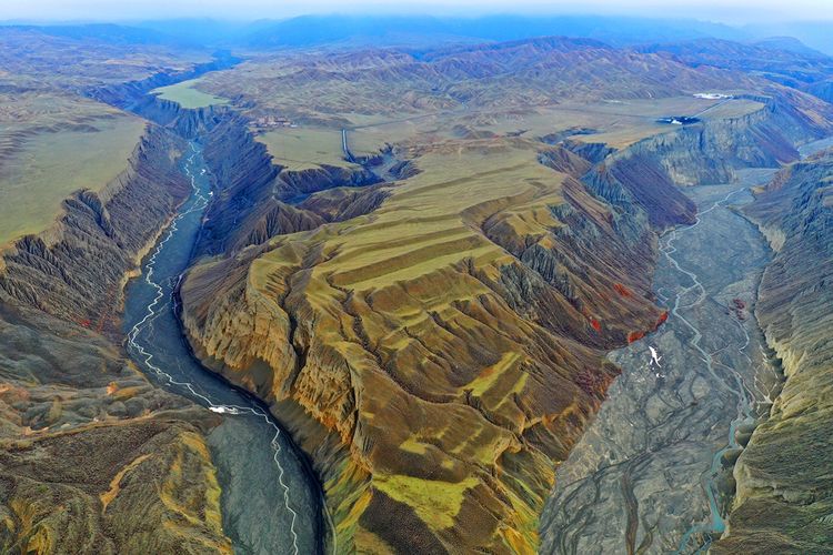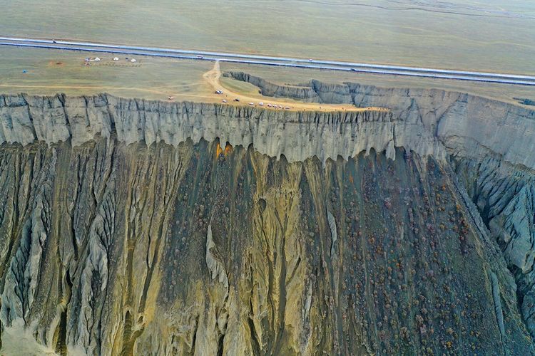 此處還未開(kāi)發(fā)為景點(diǎn),本地人知道也不多,偶有自駕游人,拍攝危險(xiǎn)系數(shù)較大,站在山頂往谷底看,背脊發(fā)涼。此照片系用無(wú)人機(jī)拍攝。