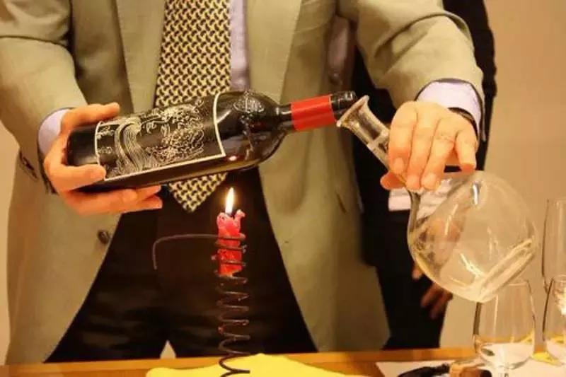 在傳統(tǒng)的侍酒服務(wù)中,開(kāi)瓶時(shí)需要在酒瓶下方點(diǎn)燃一根蠟燭,選擇合適透亮的角度,在燭光前緩緩將酒液倒入醒酒器中,直到看見(jiàn)沉淀流動(dòng)到瓶頸處停止。