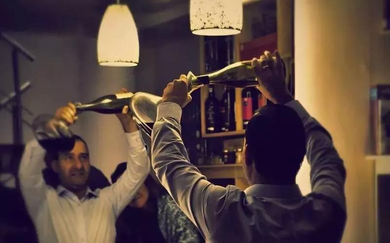 對(duì)于新酒而言,倒酒的速度不應(yīng)過(guò)慢,最好將酒液倒在瓶頸的位置,同時(shí)醒酒器和瓶口之間的角度不宜過(guò)大,這樣才能使酒液在醒酒器中形成旋流,增大了酒和氧氣的接觸面積,加速酒的“蘇醒”。