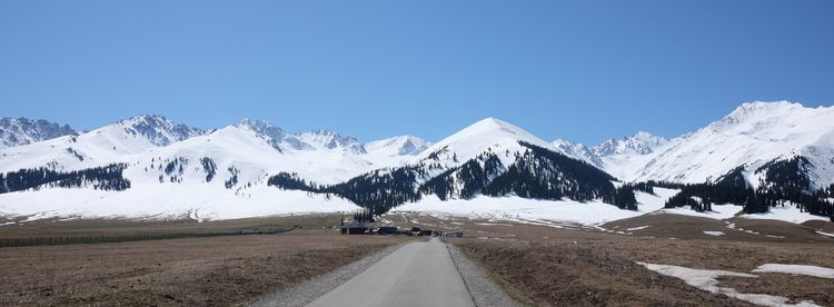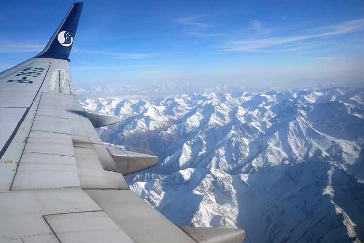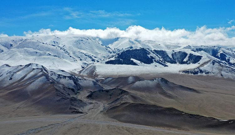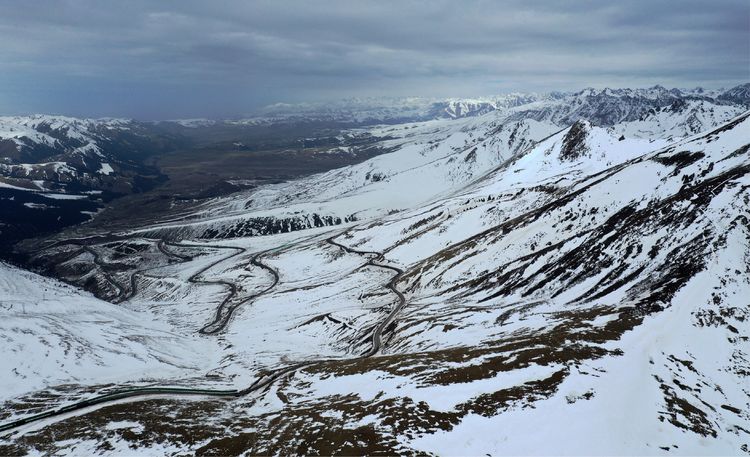 從新源縣到庫爾勒機(jī)場的途中,途徑大坂,大巴車盤旋翻越天山頂峰,終年積雪的山峰惟餘茫茫。