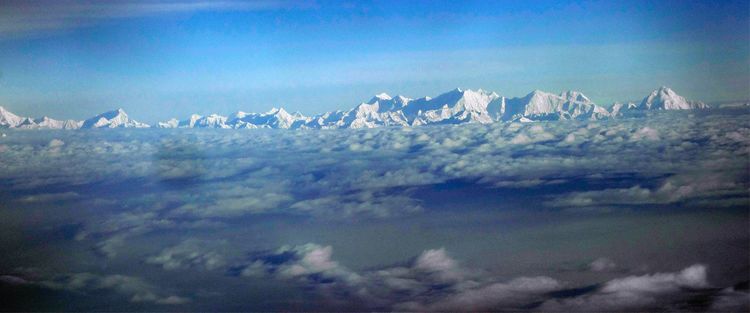 一輛輛大貨車艱難地行駛在盤旋公路上,公路層層相疊,汽車象小玩具一樣纏繞在山腰雪里云間,蔚為壯觀。