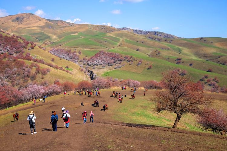 位于新源縣吐爾根鎮(zhèn)的杏花溝,滿山遍野的野杏花爭相綻放,吸引了國內(nèi)外眾多游客。