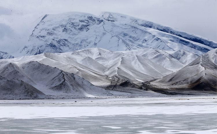 喀拉庫勒湖位于帕米爾高原上公格爾冰峰腳下。