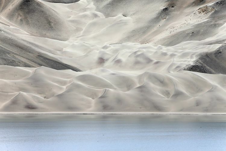 由于千百年來高原風(fēng)沙的侵襲,使得沙湖周圍的山侵蝕風(fēng)化成灰白色的沙子,形成了沙山。這里湖面如鏡,白沙如雪,景觀讓人震撼。